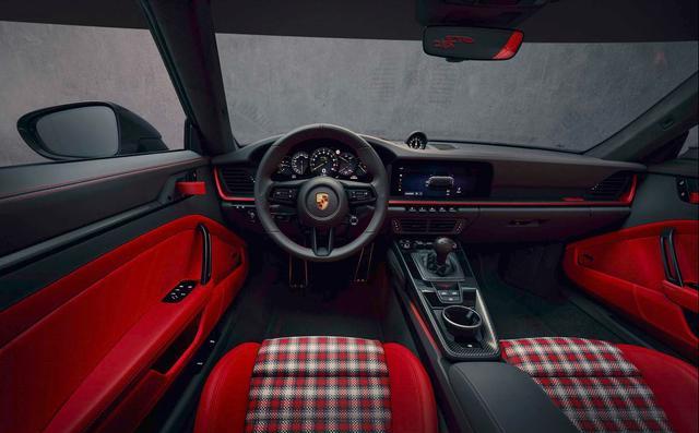 外观方面,GT3 S/C融合了GT3 RS和Speedster的设计元素,整体线条更流畅。车身采用大量Carbon Fiber碳纤维材质打造,包括前翼子板、引擎盖与车门,同时取消固定式尾翼,换来更干净的车尾造型。此外,它配备电动软顶敞篷机构,比传统Speedster的手动顶更实用,再加上20/21寸镁合金轮圈、宽体轮拱、GT3 Touring风格尾部设计,真的够帅。